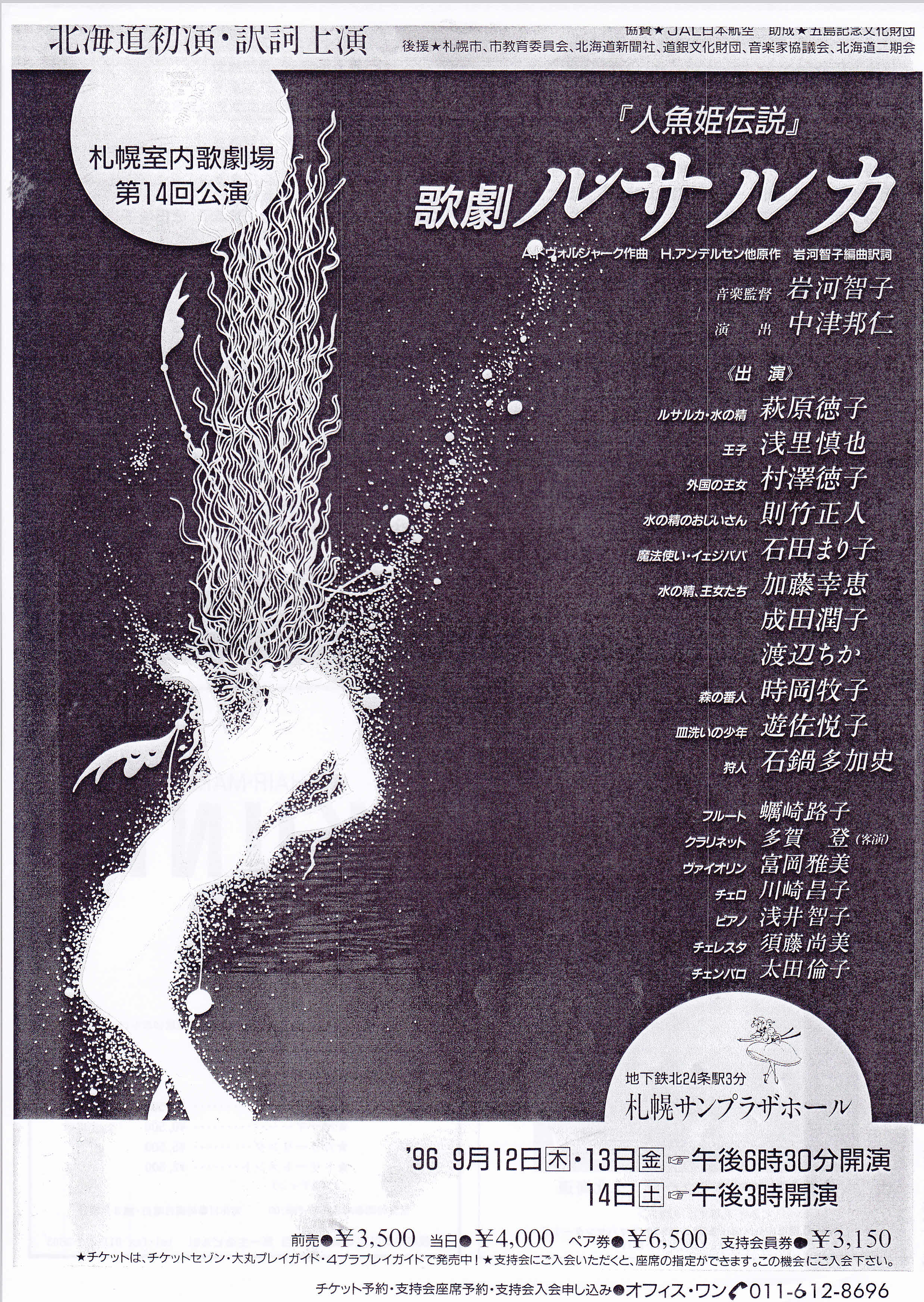 1.1996/9/12,13,14 札幌、札幌サンプラザホール、札幌室内歌劇場第14回公演「ルサル