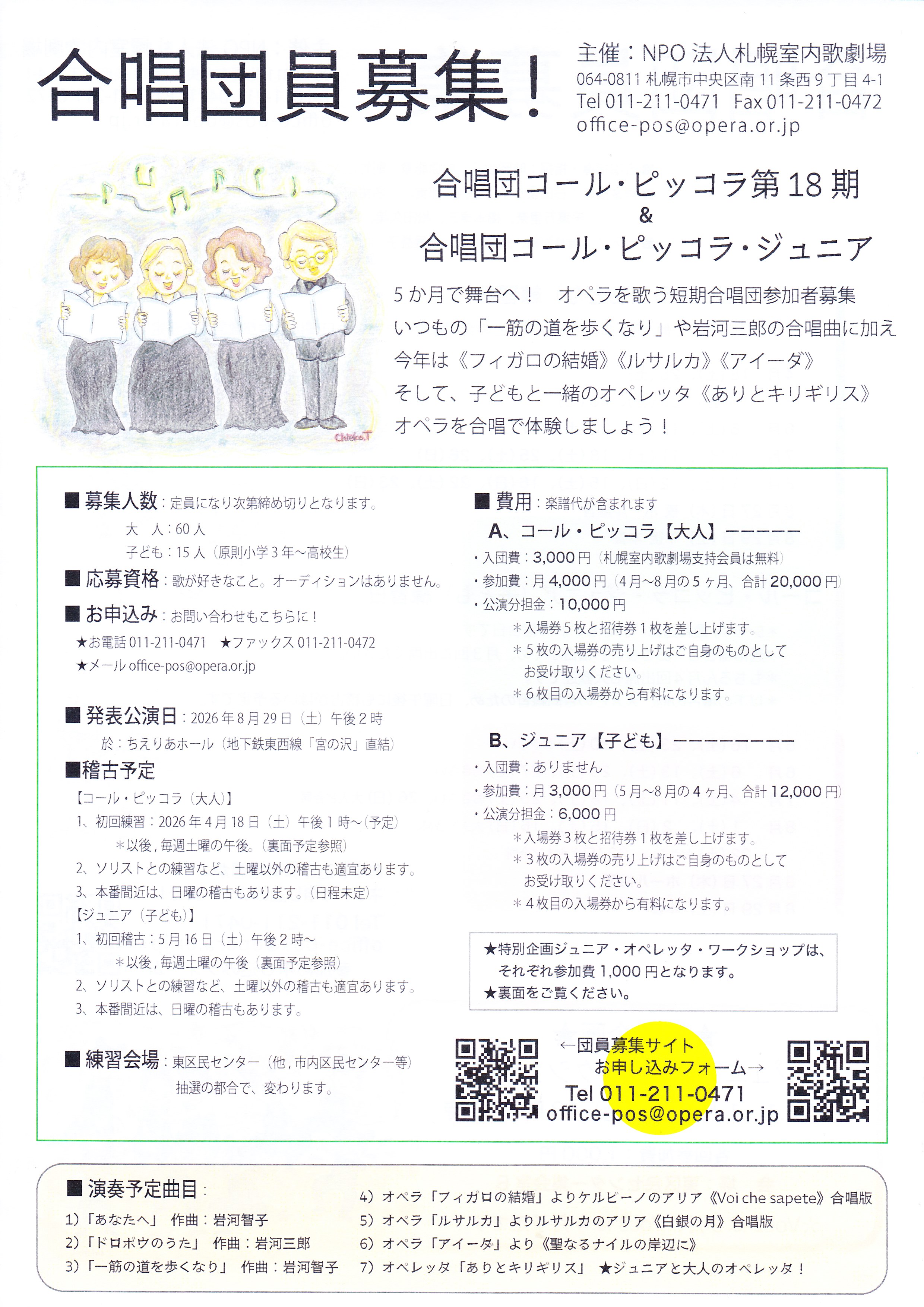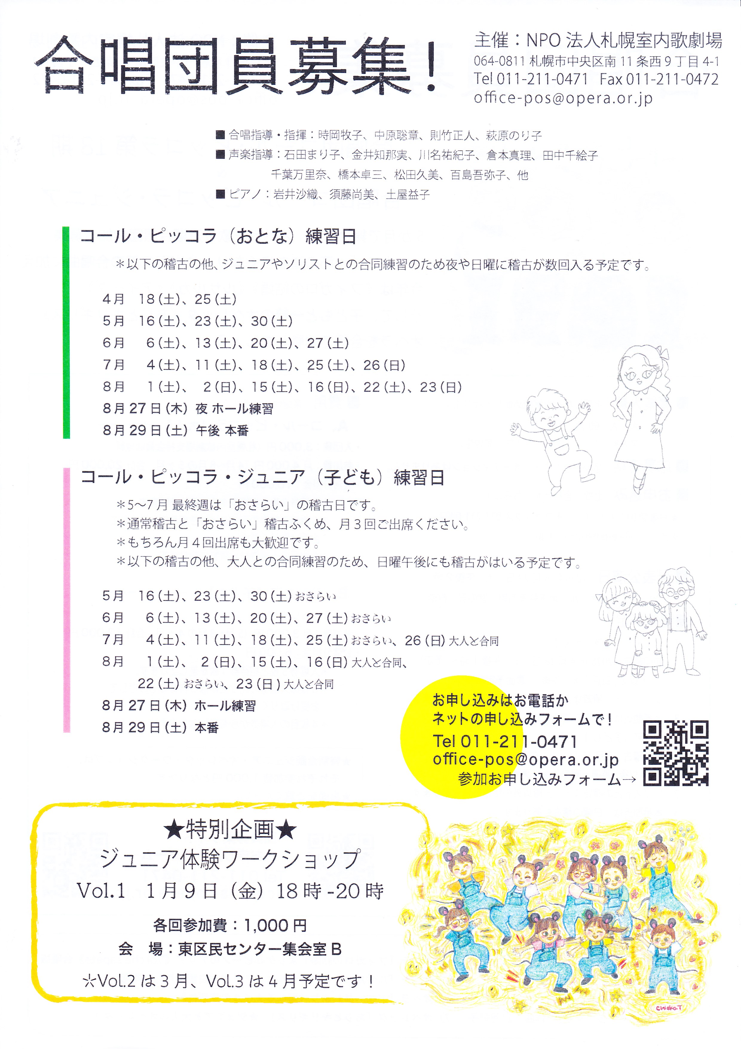 > 第18期 合唱団員募集! 合唱団コール・ピッコラ & 合唱団コール・ピッコラ・ジュニア